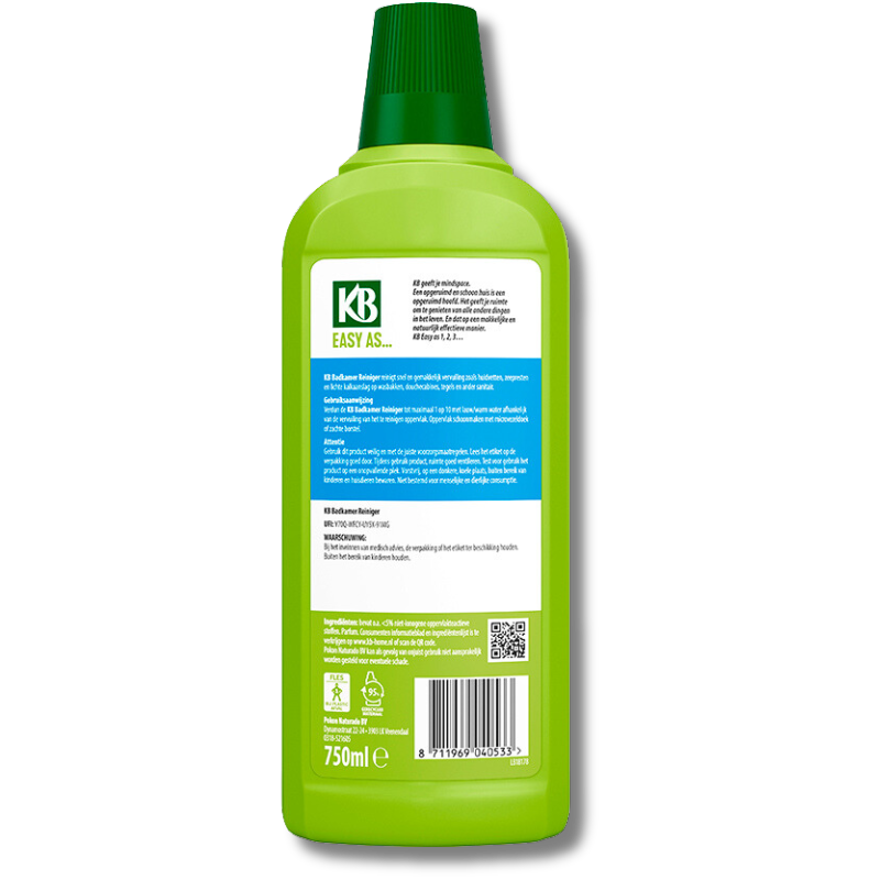 Jouw badkamer is in een handomdraai schoon en fris met KB Badkamer Reiniger. Dit schoonmaakmiddel voor de badkamer reinigt snel en gemakkelijk vervuiling zoals lichte kalkaanslag, vet- en zeepresten. Je kunt het middel gebruiken op wasbakken, douchecabines, tegels en ander sanitair.